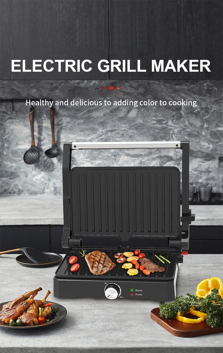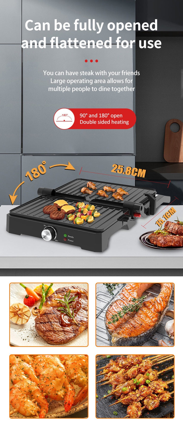 آلة بانيني رائجة البيع للتصدير عبر الحدود، آلة ساندويتش منزلية، آلة شريحة لحم مسطحة بزاوية 180 درجة، آلة شواء، معكرونة همبرغر