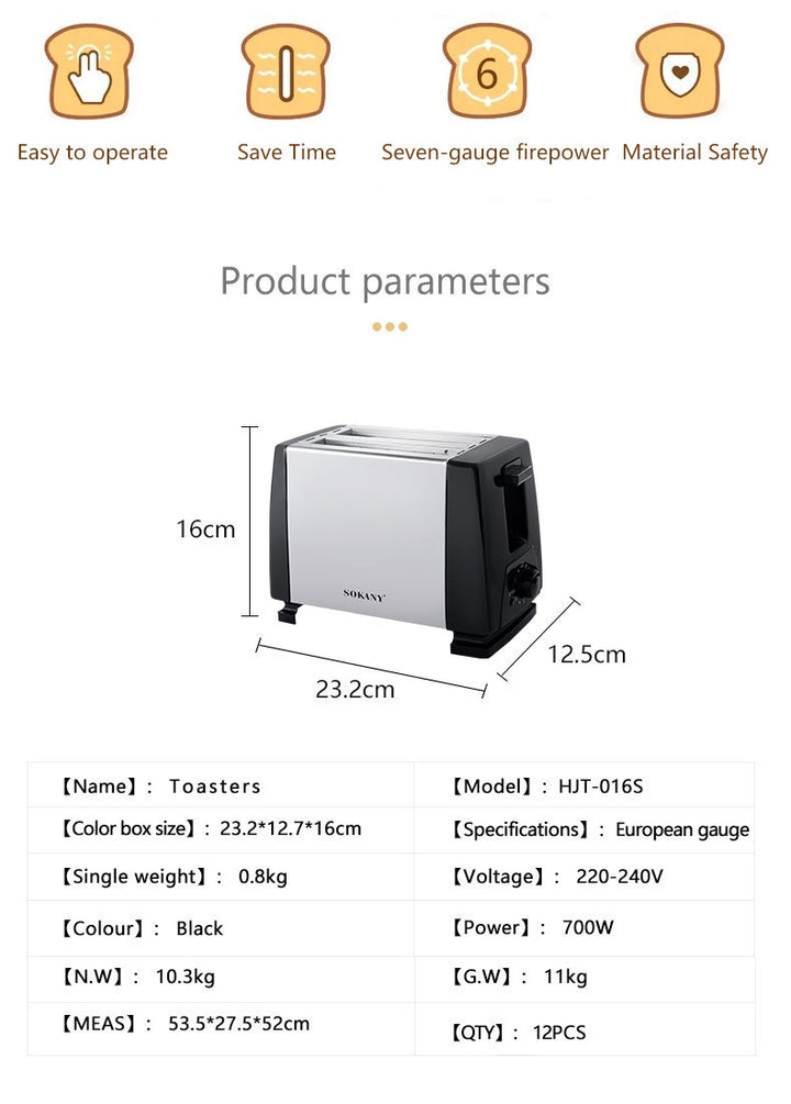 آلة خبز أوروبية قياسية عابرة للحدود، 2 شريحة، آلة إفطار أوتوماتيكية بالكامل، محمصة متعددة الوظائف، أجهزة منزلية 700 وات