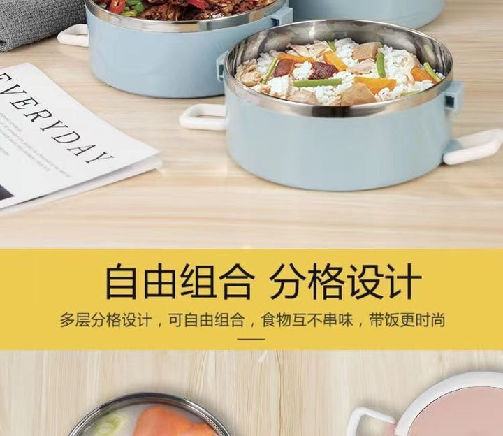 صندوق غداء سميك من الفولاذ المقاوم للصدأ سعة كبيرة، صندوق غداء معزول متعدد الطبقات دلو معزول