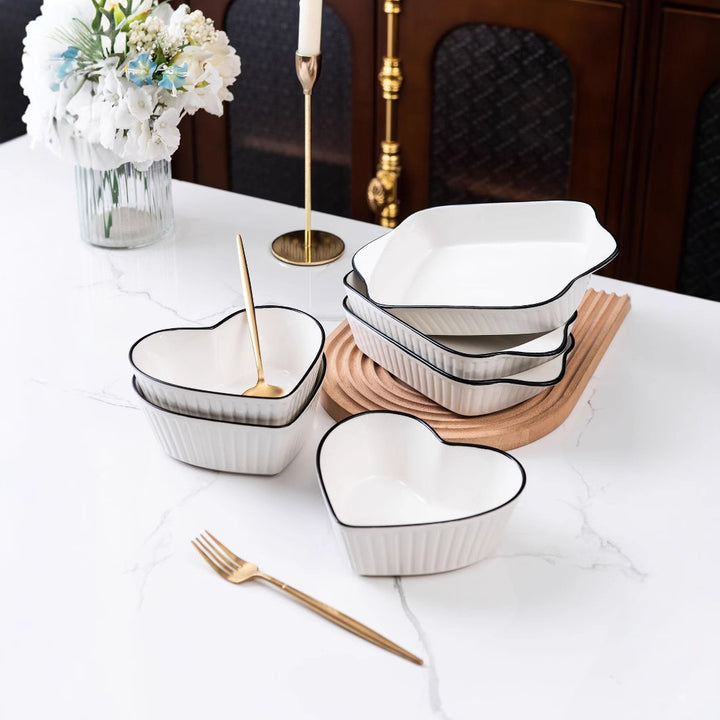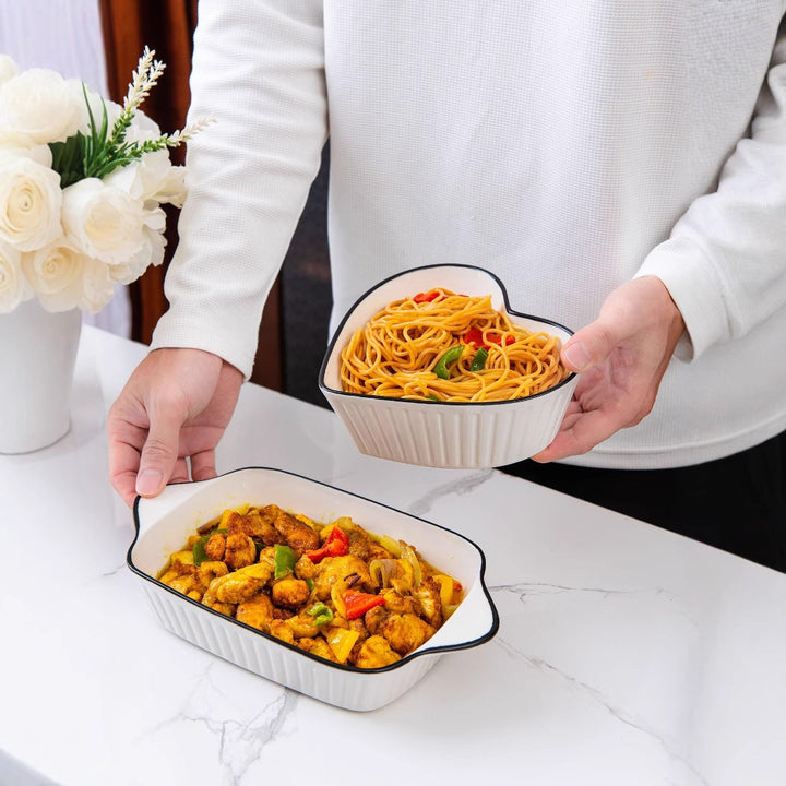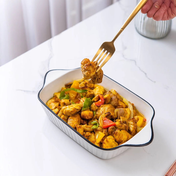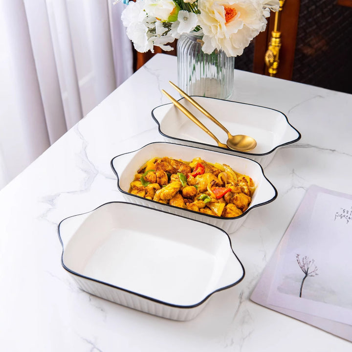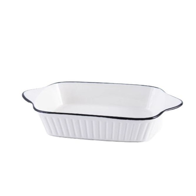 صينية خبز بسيطة لفرن الميكروويف بنمط عمودي صينية خبز سيراميكية من جنوب شرق آسيا أدوات خبز منزلية بيضاء نقية ذات حافة سوداء