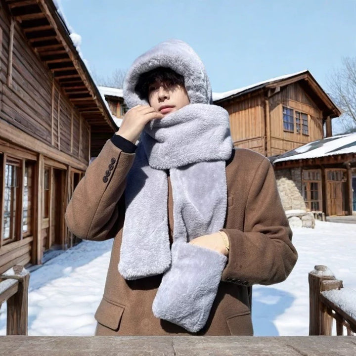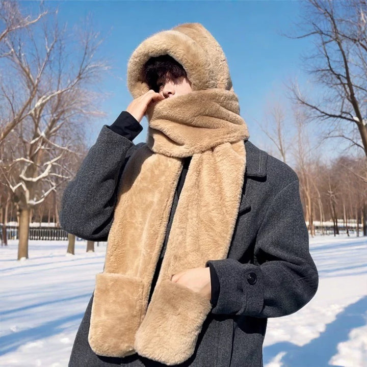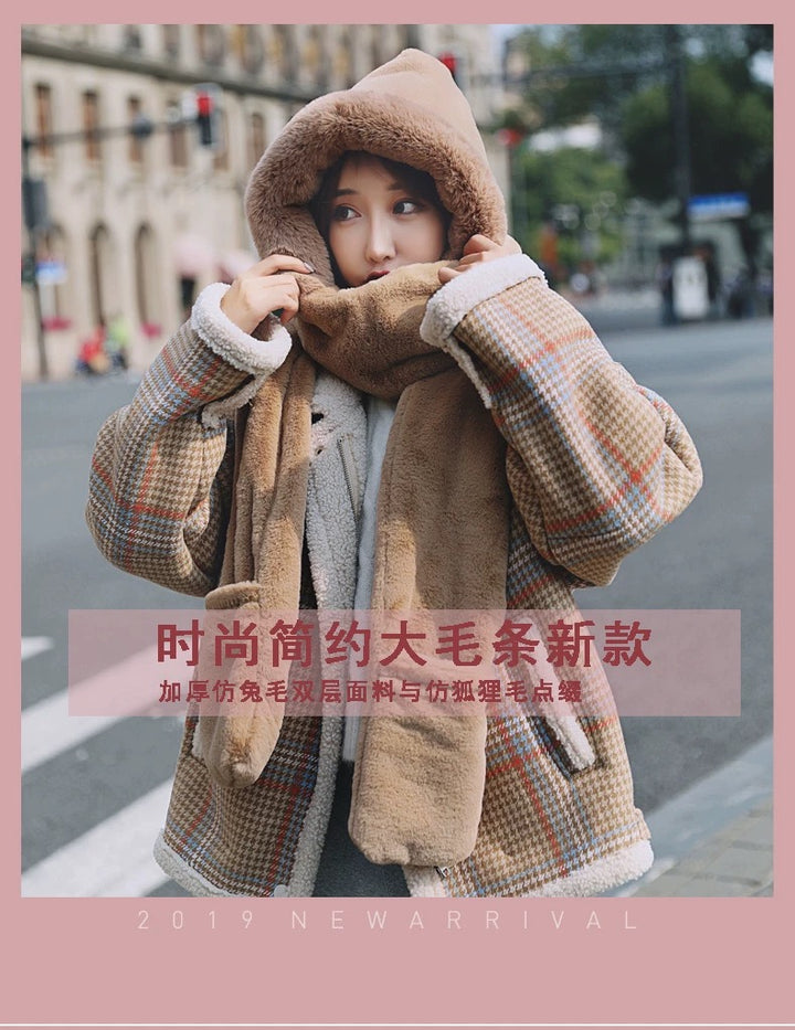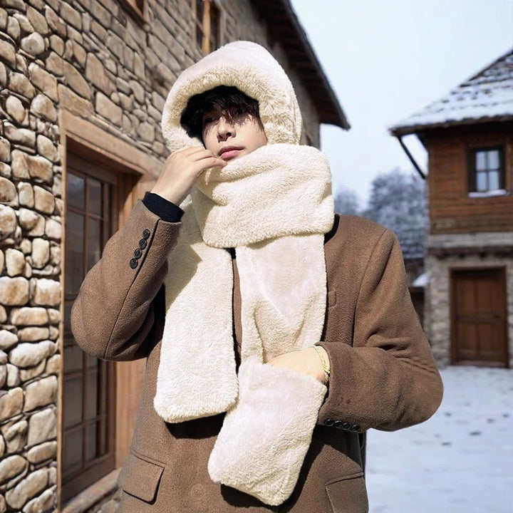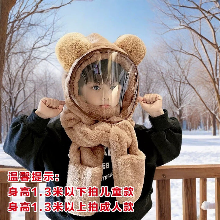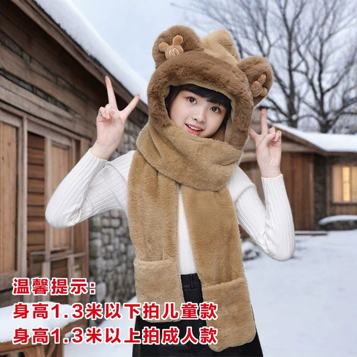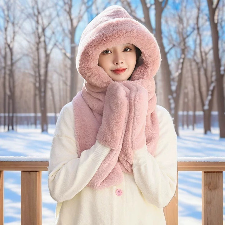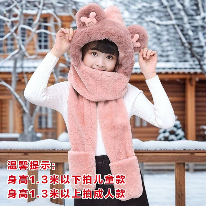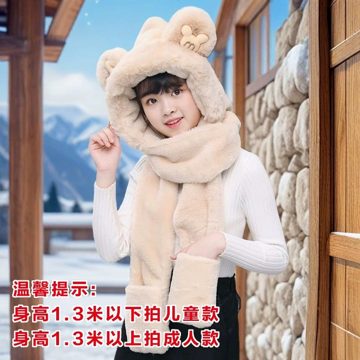 قبعة نسائية شتوية وشاح قفازات مجموعة من ثلاث قطع قفازات سميكة مقاومة للرياح غطاء للرقبة قبعة من قطعة واحدة قبعة دافئة ثلاثة في واحد