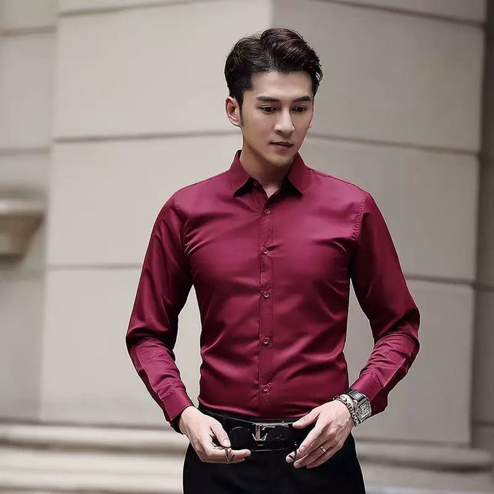 للرجال في الربيع والصيف والخريف قميص أبيض بأكمام طويلة مناسب للأعمال غير رسمي مناسب لحفلات الزفاف الرسمية للرجال قميص رفيع