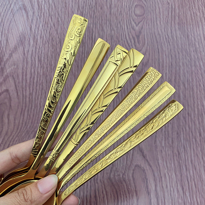ملعقة حساء بنمط ثلج كوري، ملعقة بمقبض طويل، نمط مطرقة من الفولاذ المقاوم للصدأ، ملعقة طعام غربية، ملعقة طالب، ملعقة أرز للبالغين