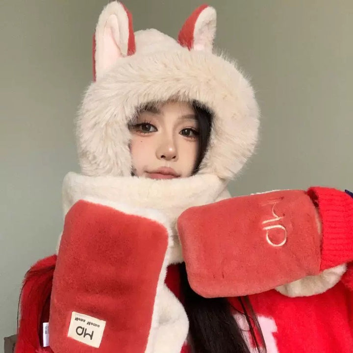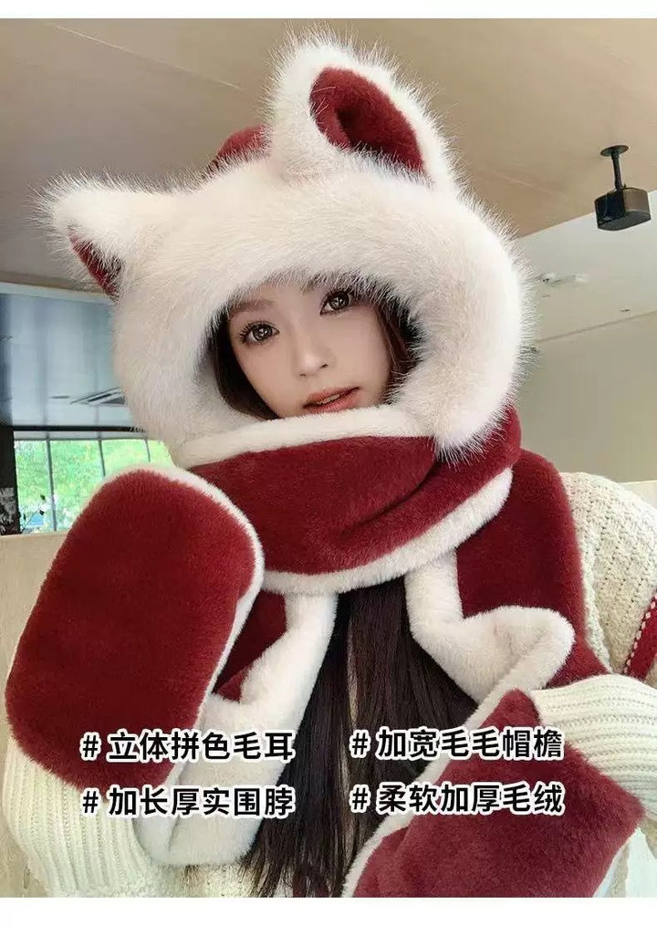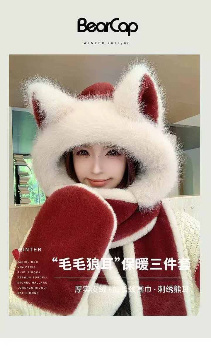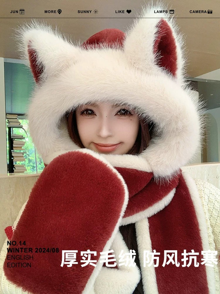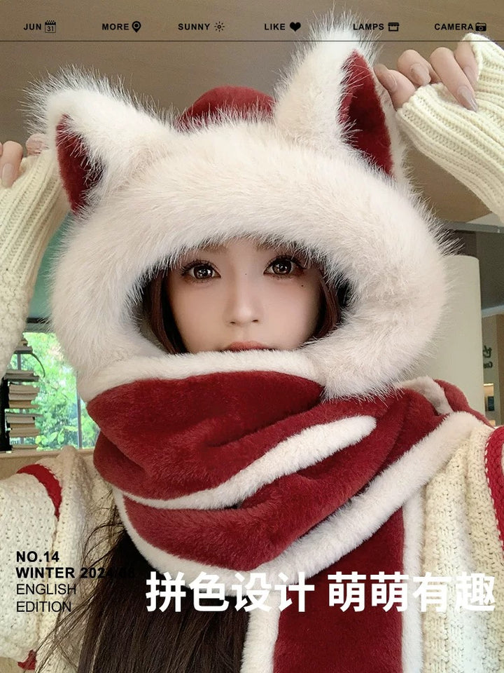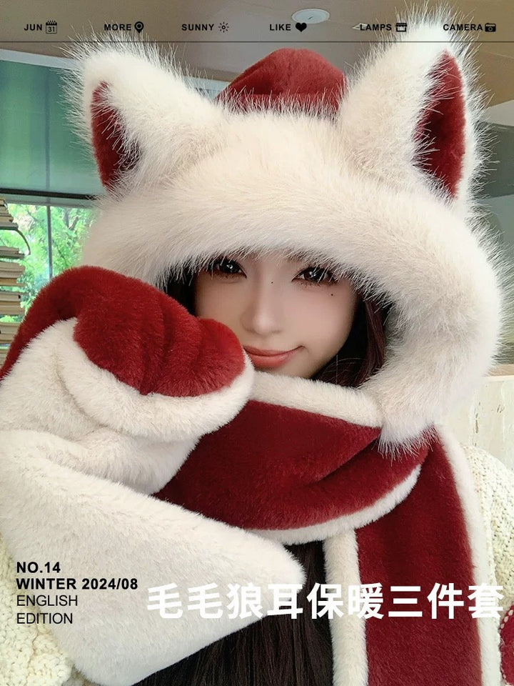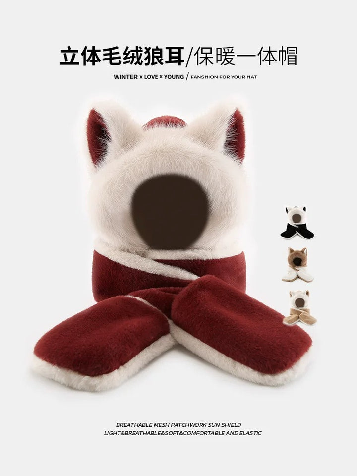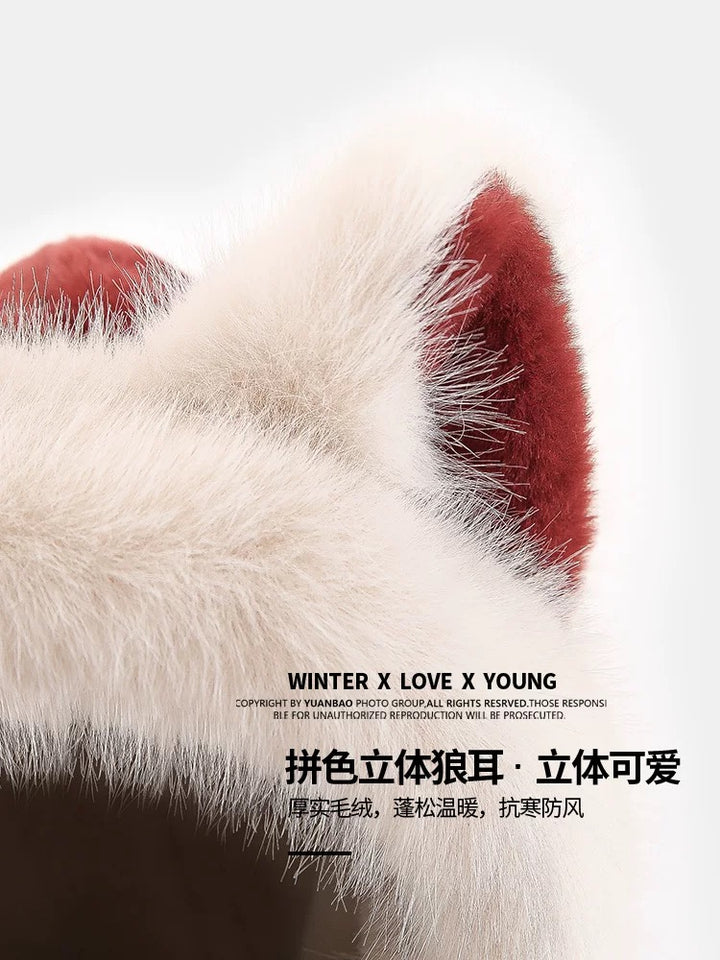 وشاح قبعة من القطيفة على شكل آذان ذئب حمراء من Ankola عالي الجودة متكامل للخريف والشتاء وركوب الدراجات والتزلج وحماية الأذن الدافئة الجديدة