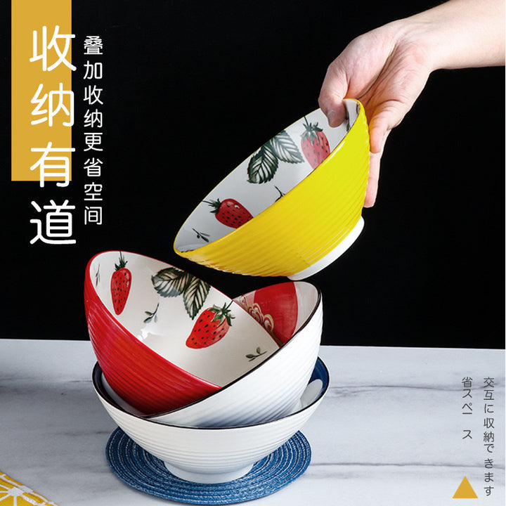 وعاء حساء المعكرونة المنزلية على الطريقة اليابانية وعاء المعكرونة الفورية وعاء سلطة الفاكهة وعاء كبير وعاء معكرونة خزفي وعاء رامين كبير